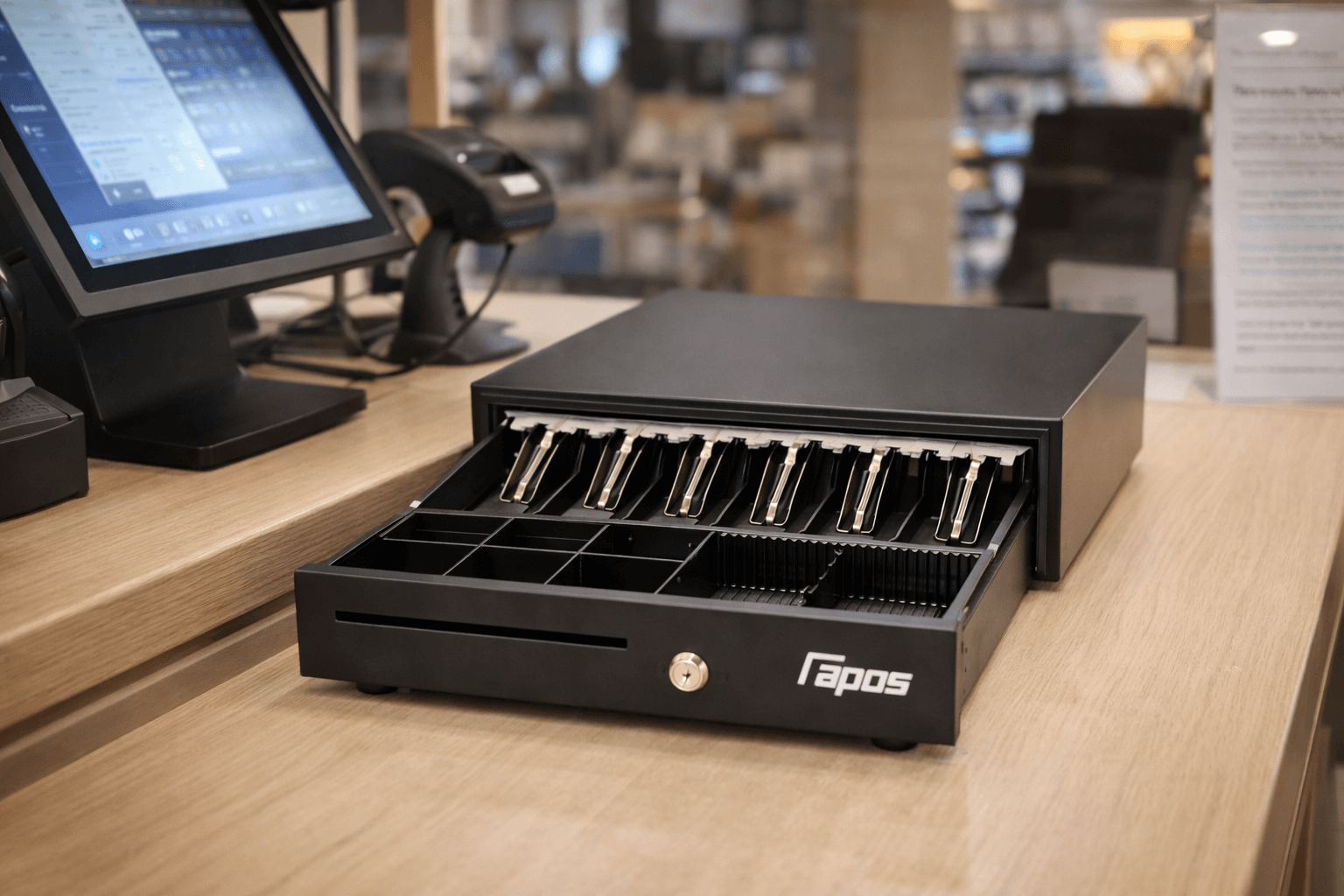 Secure and reliable cash drawer built from heavy-duty steel for long-lasting performance. Designed with multiple compartments to keep cash organized and accessible, making it ideal for busy cashier and point-of-sale setting.