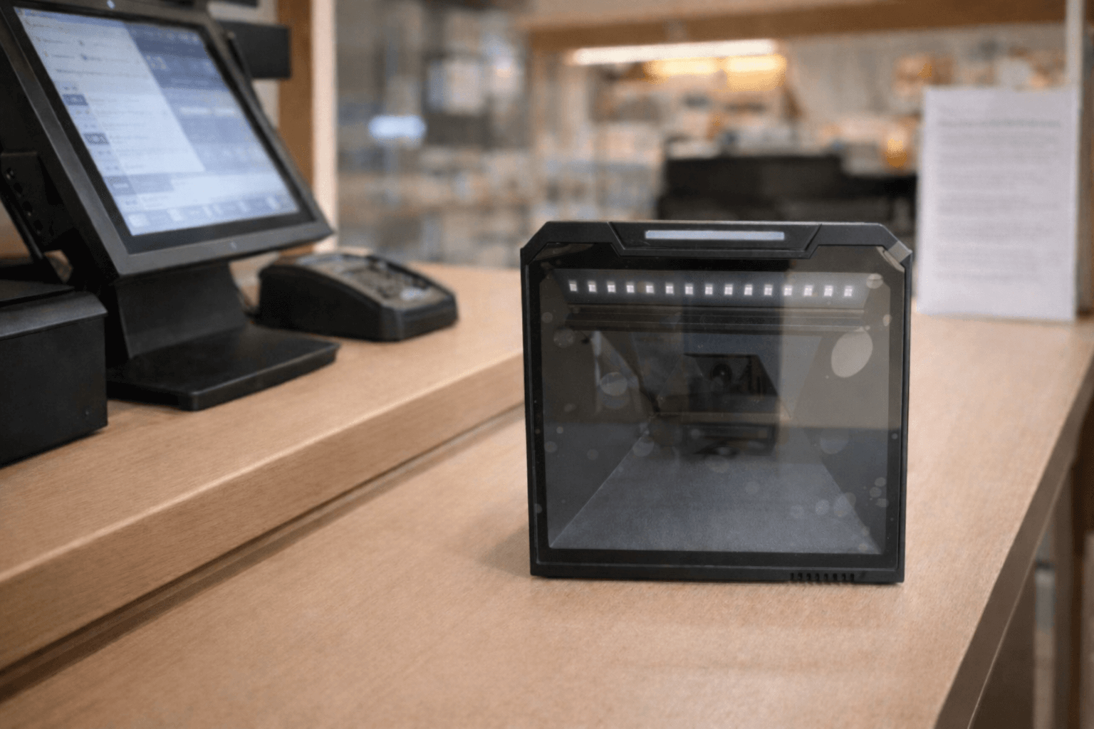 A high-performance omniscanner designed for hands-free scanning, enabling faster checkouts, smoother transactions, and improved efficiency in busy retail settings.